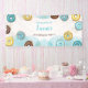 Banner "Welcome" for 1st Birthday, features a beautiful watercolor illustration of a sweet and delicious donuts.