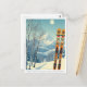 Hello from the snowy mountains of Bansko, Bulgaria! We hope you're having a wonderful ski vacation. This postcard features a gorgeous blue-grey mountain landscape with retro ski boards in an orange tribal pattern.