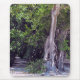 Banyan Street in Boca Grande, Florida is one of the loveliest streets for a leisurely stroll. The grand old banyan trees form an arc over the entire length of the block, making it a shady spot on the sunny Gulf Coast. The original photograph by MaeFlowers on this Mouse Pad is a view looking down the street and the walkway, divided by a row of banyan trees. The trees' trunks are shades of grays and browns, with many sculptural details formed as they grow. The abundant green leaves and branches nearly fill the photo. Dappled sunlight highlights the footpath of light colored crushed stone.