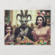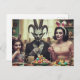 AI generated design a horror Baphomet sits at the Easter table where the mother and daughter are enjoying a candy breakfast