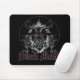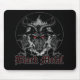 Kneeling skeletons bow before the Prince of Darkness in this Headbangers black metal dream (or nightmare) iconic crest. Black Baphomet Pentagram symbolic to Black Heavy Metal music genre.