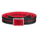 Belt with a baphomet pentagram on the buckle in black on red. The interior of the belt is red with Ave Satani repeated in black and the exterior of the belt is black with Ave Satani repeated in red. A perfect satanic belt for any occasion. Give as a gift to a satanist, occultist, witch, metalhead or anyone who is in need of a satanic belt, a pentagram belt or a Baphomet belt.