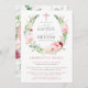 Baptism 1st Birthday Pink Floral Marble Cross Girl Invitation