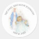 Baptism Baby Boy Blue Flowers Mary Classic Round Sticker