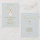 This beautiful and sweet baby is perfect for your child’s Baptism. The design consists of a sweet baby wearing a white jumpsuit, white bib with a gold cross. The background color is a delicate powder blue. Check out the matching accessories, gifts, party favors and stationery.