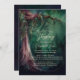 A whimsical watercolor illustration of lush foliage in emerald green and gold, sparkling with fairy lights and magic dust, with a dreamy, fairytale, botanical and floral arrangement as well as a dusty pink and mauve, draped veil, decorate this spring summer fall winter baptism or christening invitation with an enchanted forest theme. An elegant, modern invitation for a fairytale celebrations. Perfect for moms and parents who love the fairytale forest setting, the fairy forest or fairy garden theme and emerald green and gold and who want a gender neutral celebration.