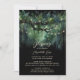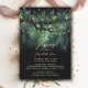 A whimsical watercolor illustration of lush foliage in emerald green and gold, sparkling with fairy lights and magic dust, with a dreamy, fairytale, botanical and floral arrangement decorates this spring summer fall winter baptism or christening invitation with an enchanted forest theme. An elegant, modern invitation for a fairytale celebrations. Perfect for moms and parents who love the fairytale forest setting, the fairy forest or fairy garden theme and emerald green and gold and who want a gender neutral celebration.