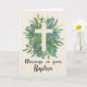 This Baptism card is for a boy and has eucalyptus and ferns arranged under a simple cross. The text reads ‘Blessings on your Baptism.’