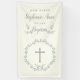 This springtime blue and green leaf wreath will brighten your celebration. This design is on a light cream background, adorned with a beautiful grey cross. Perfect for your child’s Baptism or First Holy Communion. Check out the matching accessories, gifts, party favors and stationery.