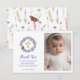 Baptism Blue Cornflower & Wheat Butterfly Photo Thank You Card