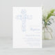 Plain white envelopes are included with paper invitations and will come to fit the invitation size you select. If you don’t need the envelopes, you may choose to not receive them by selecting the dropdown below "Envelopes" and choosing "None." If you’d like to have a design on your envelopes, you can browse all of these available envelopes to find the design that complements your Baptism Blue Cross Invitation.