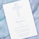 Baptism blue foliage cross invitation