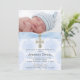 Baptism Blue Roses with photo Invitation