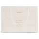 This beautiful and delicate invitation is perfect for your child’s Baptism or First Holy Communion. The accents of this design consist of a delicate white floral lace on a blush pink background. Check out the matching accessories, gifts, party favors and stationery.