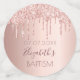 A rose gold background decorated with rose gold drips. Personalize and add a date and name/event. Dark rose gold colored letters. Some confetti chips with name and date, others with a cross. Add your own photo on two of the chips.