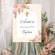 Baptism blush rose gold pampas grass arch welcome foam board