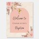 Golden marble print as background decorated with a golden cross, pampas grass and blush pink flowers and an arched shaped frame. Personalize and add a name. Back: no design