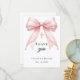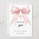 A modern and elegant Baptism, Christening thank you card. A white background, decorated with a large pink colored bow with pearls and a golden cross. On the front the text: Thank You, name, and a date.