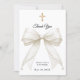 Baptism bow white ivory pearls photo thank you card