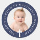 Baptism Boy | Custom Photo and Simple Cross Classic Round Sticker