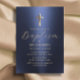 Baptism Christening Cross Modern Navy Blue & Gold Invitation