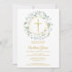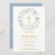 Baptism Christening Dusty Blue Garland Gold Cross Invitation