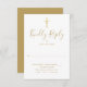 A stylish RSVP card featuring an elegant gold crucifix and chic gold typography. Ideal for baptism, christening, confirmation or first holy communion celebrations. Designed by Thisisnotme©
