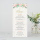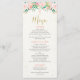 This girl's christening floral watercolor menu features some faux gold calligraphy text, a small pink cross and a floral arrangement at the top of the design. The background is an off white watercolor-paper image. Same design christening invitation is available at the store along with other party items. This girl's floral watercolor christening menu is ready to be personalized.