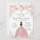 Baptism Christening Girl Blush Floral Roses Silver Invitation