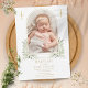 Baptism Christening Greenery Gold Arch Photo Invitation