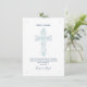 This modern Baptism, or Christening, Thank You Card features an elegant illustrated blue, green and white floral cross. A quick and easy way of thanking guests for joining a boy's religious celebration, it can be customized with your child's name and a personal note. The background color can also be changed to your liking.