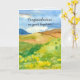 Baptism congratulations for an adult featuring a desert landscape in spring with yellow wildflowers and mountains in the distance under a warm blue sky illustrated with watercolor. On the inside is a faded version of the front illustration and a scripture from John 10:38 and text that you can edit to fit your needs.