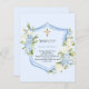Baptism crest blue florals boy invitation