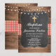 Baptism Cross Christening Red Check Gingham Chalk Invitation