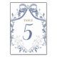 Baptism elegant blue bow table number