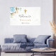 Welcome to an elegant baptism cekebrating a baby boy. A chic white background. Decorated with a watercolored light blue rose and green eucalyptus leaves, sprigs, greenery, faux gold leaves. A faux gold cross. Personalize and add the name of the child