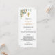 Baptism reception menu card. Personalize and add a name, date and the menu. A chic white background. Decorated with watercolored eucalyptus leaves, sprigs, greenery, faux gold leaves. A faux gold cross.