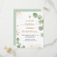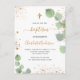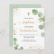 Baptism eucalyptus greenery glitter cross script invitation postcard