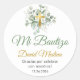 Elevate your baptism decorations with this religious sticker. Featuring gorgeous watercolor greenery and a pretty gold cross, this sticker combines cuteness with elegance, making it the perfect addition to your baby's baptism favors.