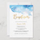 Plain white envelopes are included with paper invitations and will come to fit the invitation size you select. If you don’t need the envelopes, you may choose to not receive them by selecting the dropdown below "Envelopes" and choosing "None." If you’d like to have a design on your envelopes, you can browse all of these available envelopes to find the design that complements your Baptism Invitation Blue Watercolour And Gold.