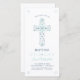 This modern customizable Baptism or Christening invite features an elegant blue and green illustrated floral cross. Ideal for a boy's religious celebration, it can be personalized with your child's name and the event details. The background color can also be changed to your liking.