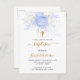 Baptism light blue florals boy elegant white invitation postcard