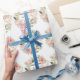 Baptism Name Date Cross Dove Spring Flowers Wrapping Paper
