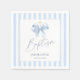 Celebrate your little boy's or girl's special day with this modern baby blue bow and stripe paper napkins. Perfect for a baptism celebration, this customizable design features soft watercolor details and formal text layout. Personalize with your child’s name and date.