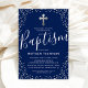 Baptism Navy Blue Silver Glitter Christening Invitation