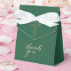 This beautiful and elegant baptism, christening, first holy communion, or confirmation favor box features a gold floral cross as well as the words "Thank You" in a trendy gold script font. The background color (shown in Kelly green), ribbon color, and message on the back can be customized to your liking for your special religious occasion.
