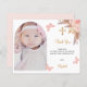 A modern and elegant baptism thank you card. A white background decorated with blush florals, pampas grass and butterflies. Personalize and add your photo of the child inside the arch frame, thank you note and name.