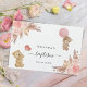 A white background. Decorated with rose gold, pink florals, pampas grass and two teddy bears. Personalize and add a name and date.