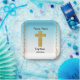 Baptism Party & Gold Cross, Glitter, Blue Paper Plates
