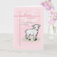 Bring a smile to a baby's baptism with with this pink card. It has a baby sheep , cute and perfect to give your best wishes to a baby girl on her baptism.